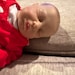 She or he has a closed mouth that has a wet glossy look. You will need to support her/his head as would a real newborn. Her cute little round head flops back & forth just like a real baby. Her/his fine baby hair is drawn in with a faint mist of brown paint. If you choose the heavy option from the drop-down in this listing, the soft cloth body is weighted & stuffed with fluffy fill to round her/him out. Her arms & legs are weighted as well; she/he can even sit up nicely.