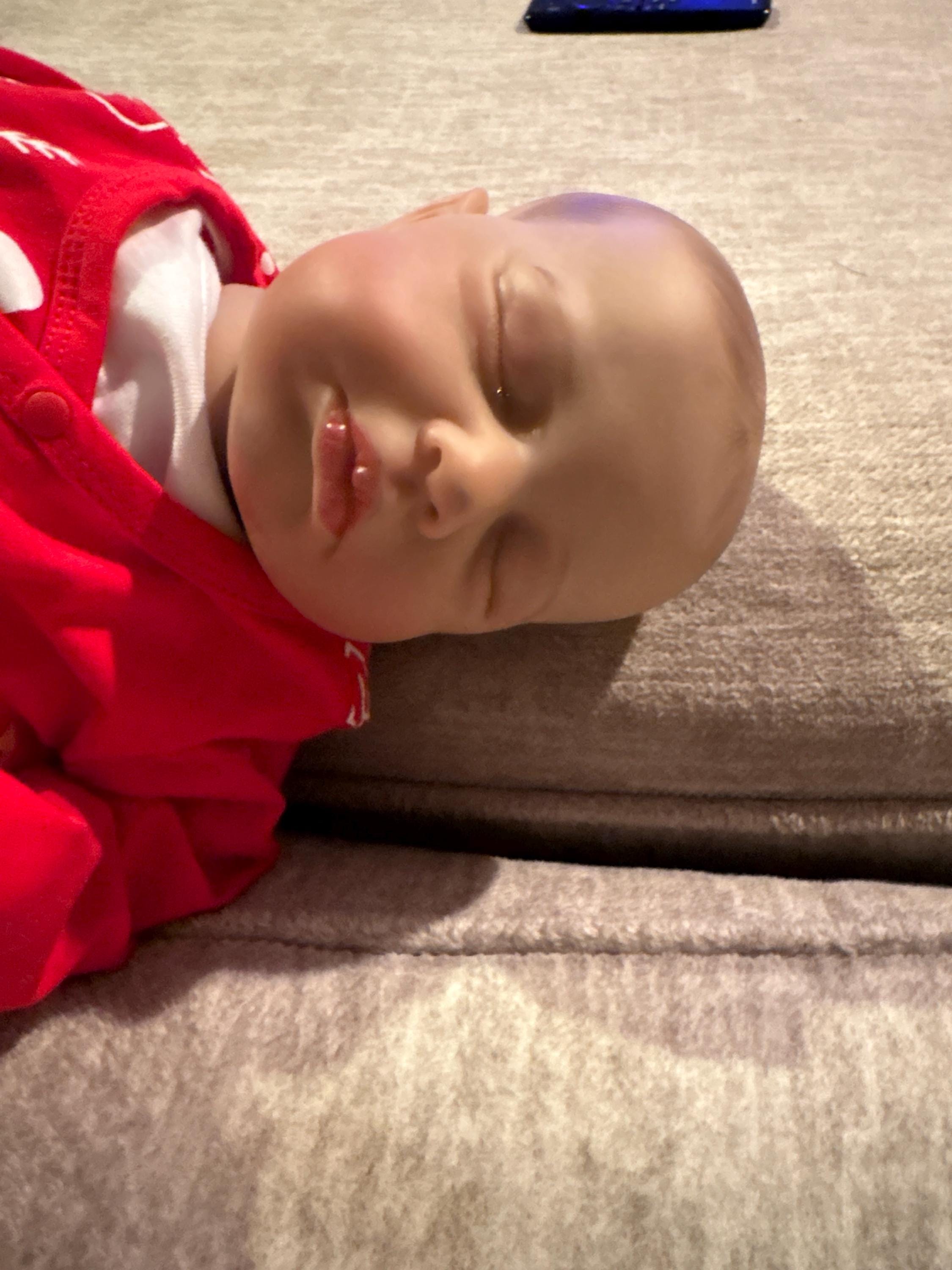 This beautiful newborn weighted doll that I have lovingly crafted using brand-new, fully-painted doll parts. Using high-quality materials such as soft, huggable vinyl and gentle-touch fabric, my dolls are carefully designed to look and feel like real babies, providing a unique and memorable experience for collectors and children alike.