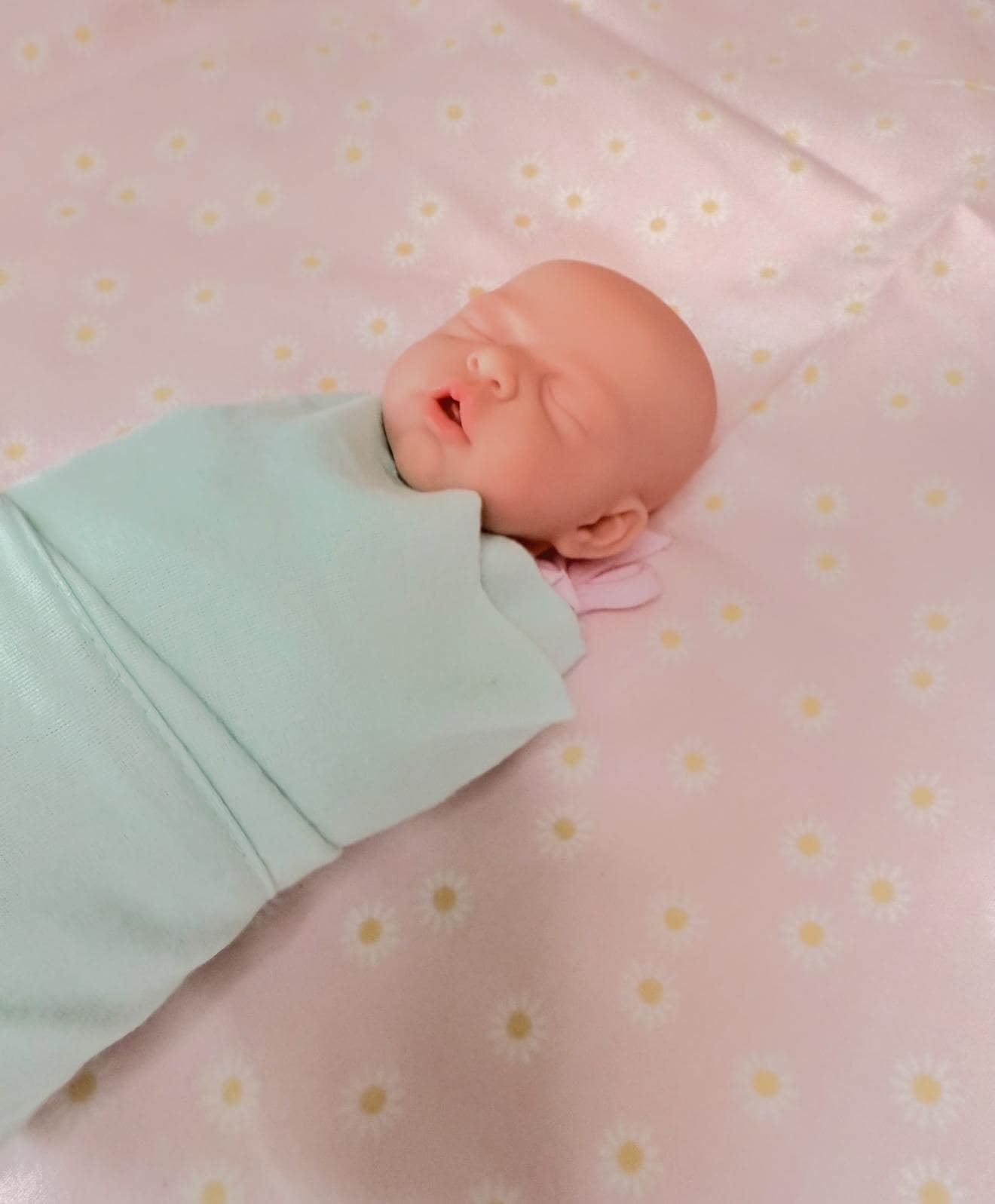 This silicone preemie doll is 12 inches from head to toe, fitting into preemie-size clothes.
