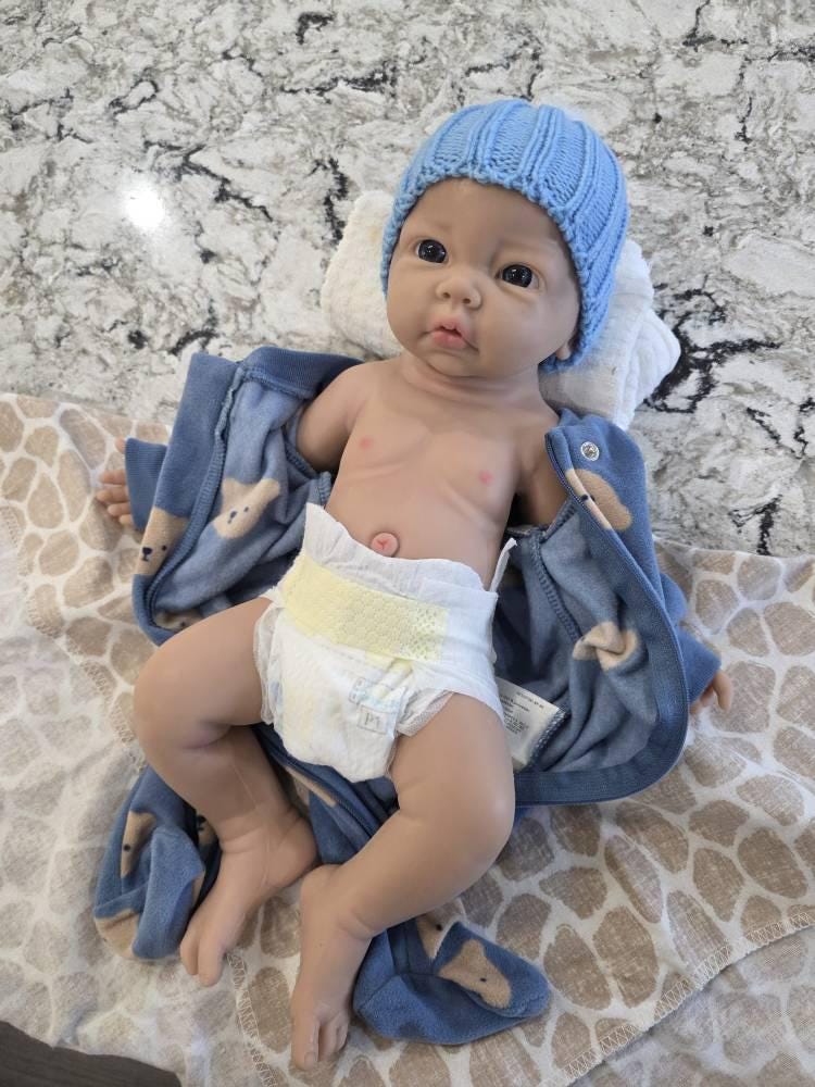 All my silicone babies may have minor flaws, and a few areas where the paint might be thicker. This is not an imperfection but just the nature of silicone dolls. This baby was not sculpted nor poured by me. I purchase the blank silicone kits and bring them to life by adding lovely details.
