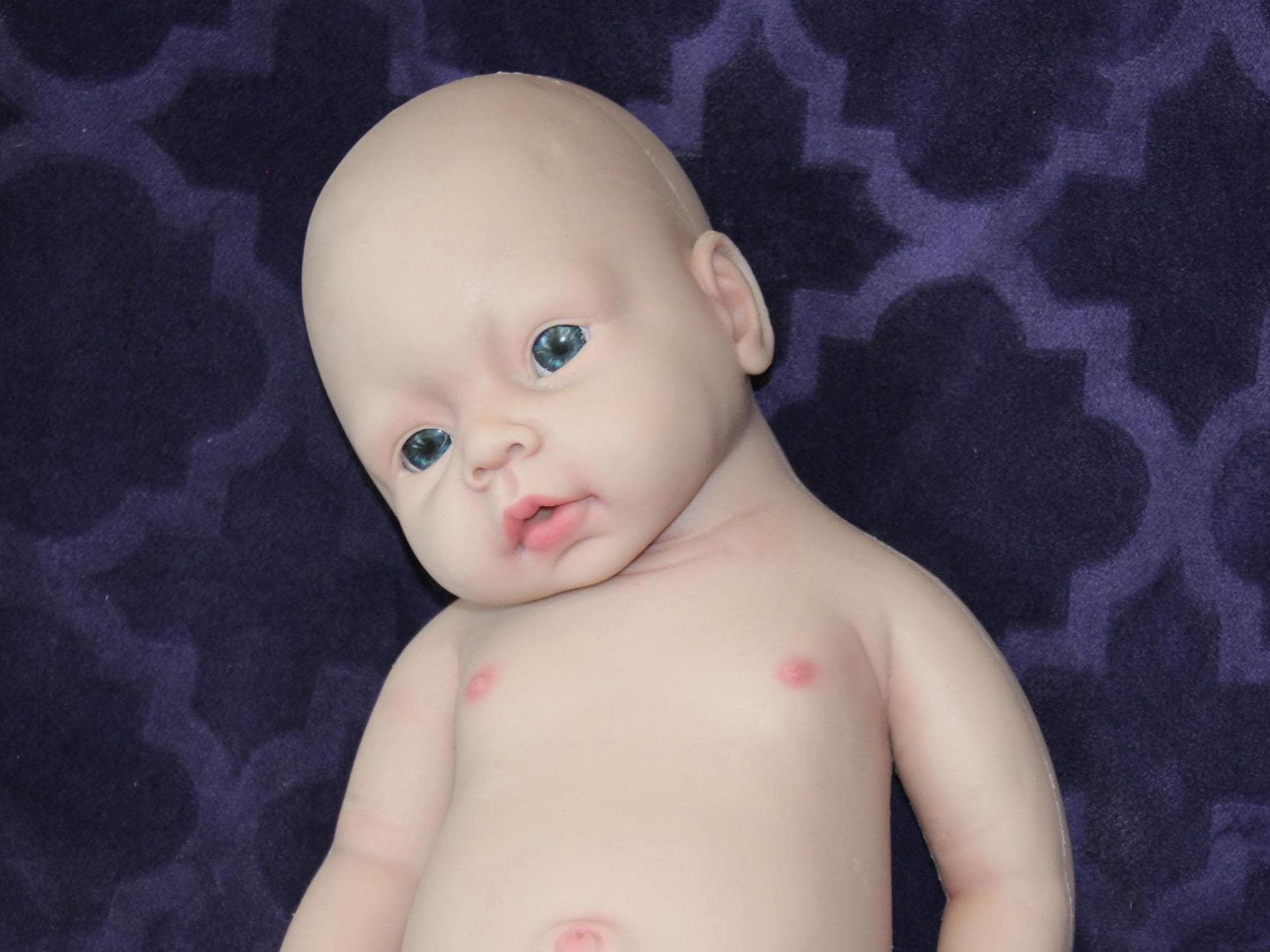 All my silicone babies may have minor flaws, and a few areas where the paint might be thicker. This is not an imperfection but just the nature of silicone dolls. This baby was not sculpted nor poured by me. I purchase the blank silicone kits and bring them to life by adding lovely details.